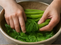 - - 데치는 시간을 1분에서 2분으로 늘리고, 데친 뒤 식초물(물1 L+식초1T)에 5분 담그면 쓴맛이 크게 완화됩니다.